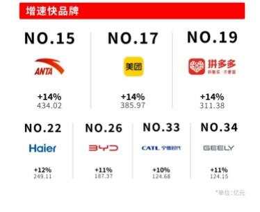 值得关注的是,这些增速快品牌均源自当前中国最具新质生产力与全球竞争力的产业领域,覆盖新能源汽车、互联网科技、家电及零售消费等关键赛道。